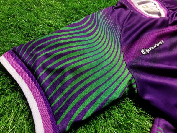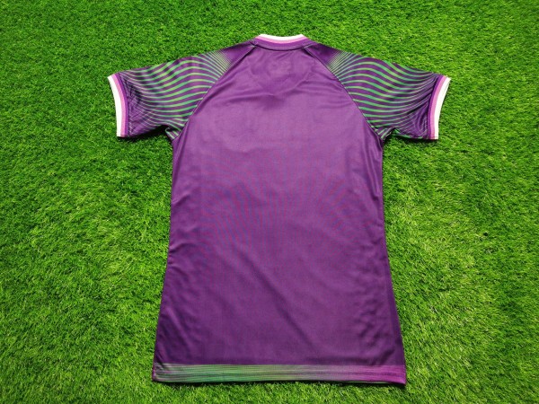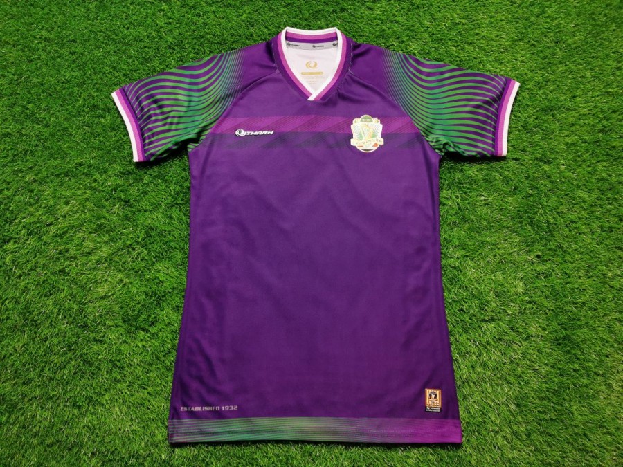 Koszulka to model wyjazdowy. Wykorzystano tutaj połączenie fioletu z delikatnymi zielonymi wstawkami. Warto zwrócić uwagę na herb, który ładnie błyszczy się odbijając światło słoneczne. Oprócz harfy widnieje tam także data założenia klubu - rok 1932. Ten sam rok umieszczono także w dolnej części koszulki. Ponadto poniżej instrumentu umieszczono flagę Iraku, co symbolizuje przywiązanie do ojczyzny. Ciekawym elementem są także rękawy. Producent zaprojektował tam wzór przypominający fale morskie. Użycie zielonych elementów doskonale współgra z fioletem trykotu.