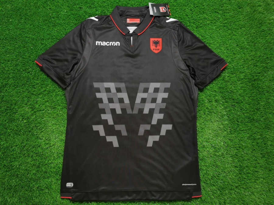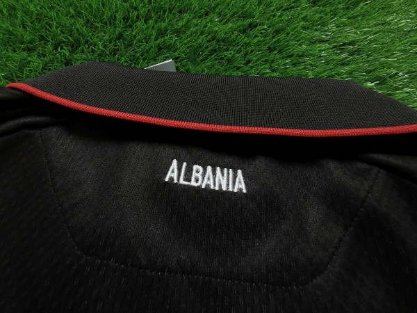Kolorystyka koszulki nawiązuje do przydomku Albańczyków czyli barw czerwieni i czerni. Wystarczy jedno spojrzenie na ten trykot i od razu zauważamy grafikę w centrum. Cóż to takiego? Nic innego jak orzeł, który jest podobny do zwierzęcia znajdującego się w herbie federacji. Smaczku koszulce nadaje także nietypowy kołnierzyk z czerwoną obramówką, na tyle którego można dostrzec nazwę kraju.