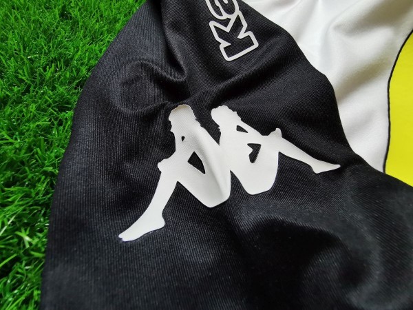 Dodatkowo ten model jest trochę niestandardowy - spójrz na niego i... a gdzież to ukryło się logo producenta koszulki? Kappa postanowiła oznaczyć się na rękawie i... tylko tam. Na wysokości herbu klubu po drugiej stronie nie ma nic, a więc powstała ciekawa asymetria. Podkreśla ją dość wysoko umieszczony logotyp sponsora głównego.