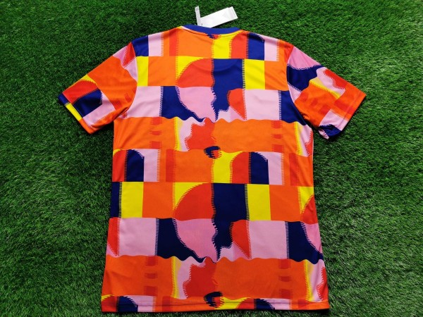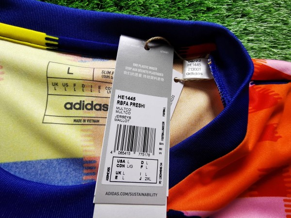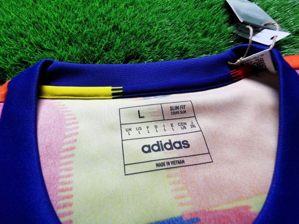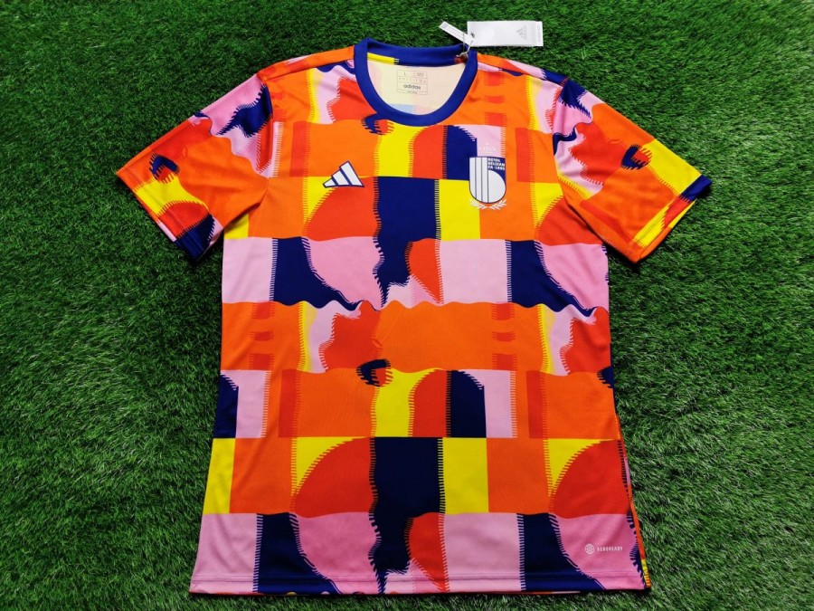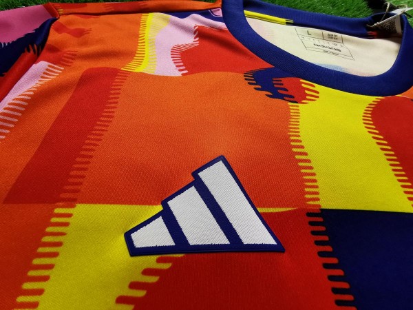 Kojarzysz koszulkę wyjazdową reprezentacji Belgii pod szyldem festiwalu Tomorrowland? Adidas poszedł za ciosem i zrobił do niej także trykot przedmeczowy. Dużo jasnych i żywych kolorów, tworzących twórczy chaos wygląda niczym wielokolorowa i mieniąca się w światłach scena. Zresztą, to muzyka elektroniczna, więc tu nie może być nudy i rygoru stonowanego niczym na oficerskim mundurze.