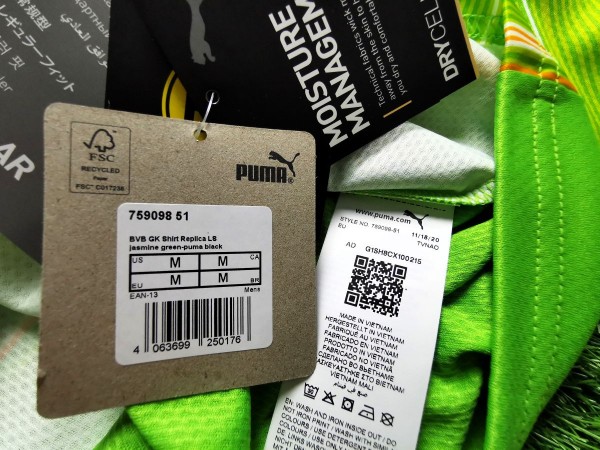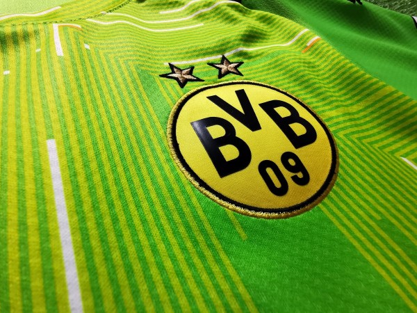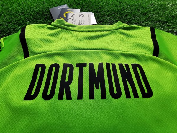 W fajny i ciekawy sposób wkomponował się sponsor główny BVB. Jego kwadratowy kształt idealnie wpisuje się w projekt opierający się głównie na czworokątach. Oczywiście, sponsor oraz napis "Dortmund" na górnej części pleców, wskazują że to model używany w rozgrywkach ligowych.