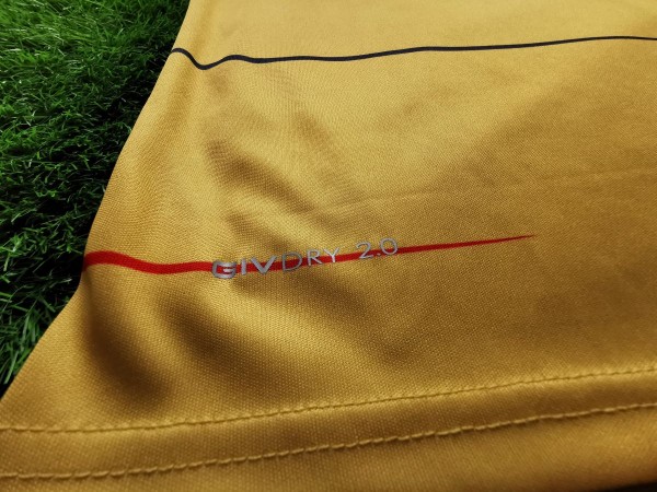 Givova wykonała ten trykot w dość ciekawy sposób. Połączyła kilka technik i wzorów, a całość została ubrana w ciekawą złotą powłokę. Najbardziej wyróżniającym się elementem jest herb. Mocno przykuwa uwagę.