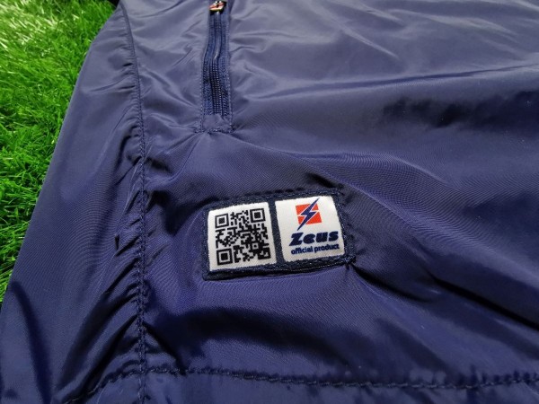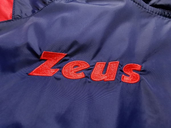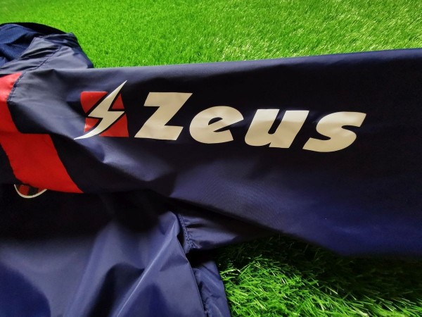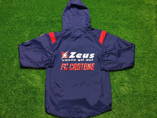 Rzadki okaz w Polsce, czyli deszczówka włoskiego zespołu Crotone. Deszczówka to taka bardzo cienka kurtka z kapturem, która ma chronić przed opadem, ale jednocześnie nie ogrzewać posiadacza. Świetna na trening lub grę w przelotnych opadach. Wykonanie jest bardzo dobre - zobacz, że zadbano o takie detale jak suwak na zamku błyskawicznym, który w sobie zawiera błyskawicę, czyli logo Zeusa. Jeśli producent dba o takie szczegóły to wiedz, że robi dobre rzeczy :)