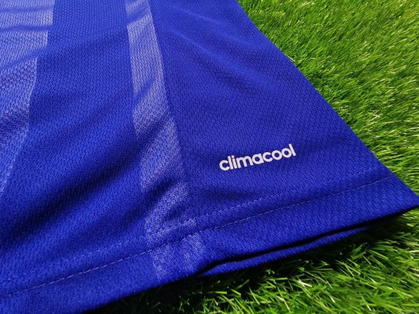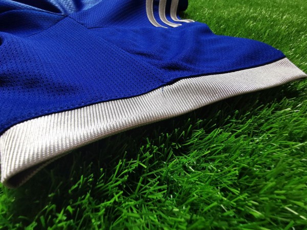 Piękny trykot - połączenie głębokiego i żywego niebieskiego z połyskującym srebrem wyszło imponująco. Do tego dostosowano emblematy, które nadają koszulce klimatu. Herb klubu jest absolutnym dziełem sztuki, tylko popatrz na zdjęcia. Logo Adidasa również zostało wykonane z TPU i naklejone na koszulkę, aby w pełni dostosować się do projektu. Srebrne charakterystyczne paski na ramionach czy zakończenie rękawów - ręce same składają się do oklasków.