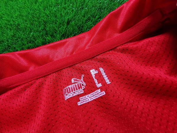 Jest to bardzo ciekawy przypadek koszulki, gdyż ta sztuka jest wersją olimpijską - od dorosłej kadry różni się tym, że na rękawach nie umieszczono logo producenta, czyli Pumy.
