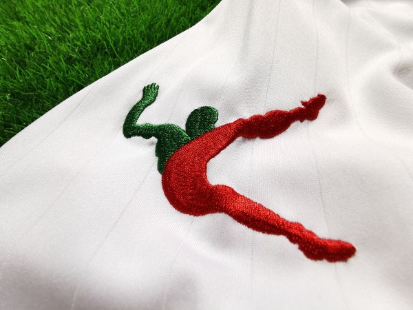 Domowy trykot łączy w sobie tradycyjne dla Iranu kolory - biel ozdobioną czerwienią i zielenią. Jest również element złota na kołnierzu, który nadaje fajnego smaku.