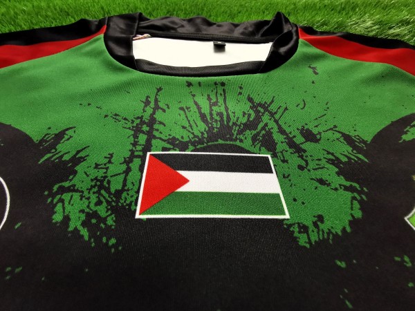 Palestyna to kraj pogrążony w wojnie. Ciężko o wiele rzeczy. Dlatego klub sam produkował sobie koszulki, a te zaś nie były łatwo dostępne na świecie. Koszulka jest utrzymana w kolorach, które można znaleźc na fladze kraju. Co ciekawe, ta także widnieje na klatce piersiowej. Głównym motywem koszulki jest orzeł, którego głowę przysłania, a może stanowi, wcześniej wspomniana flaga. Fajny motyw.