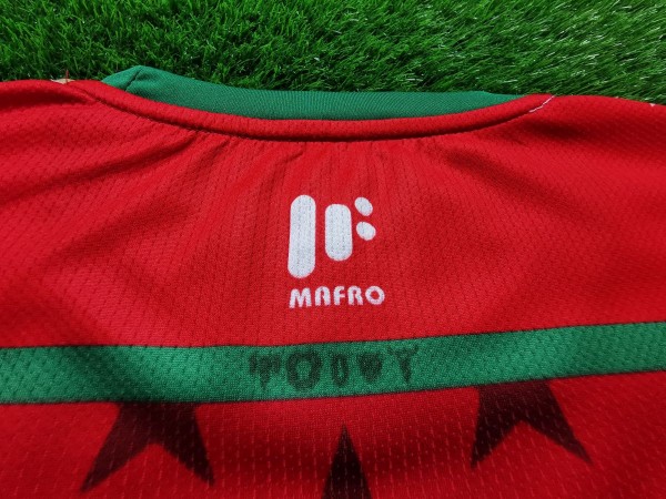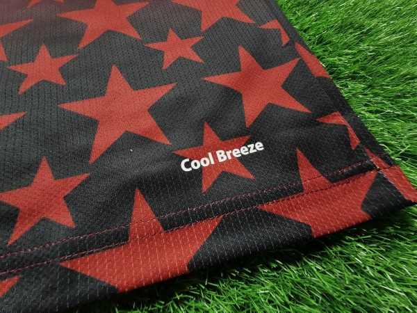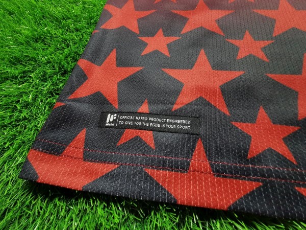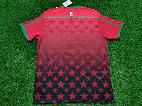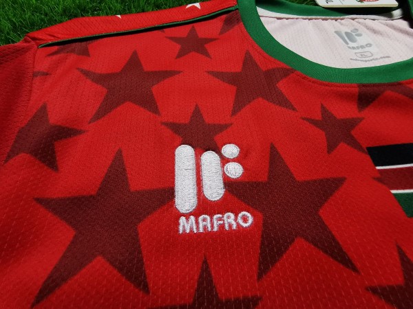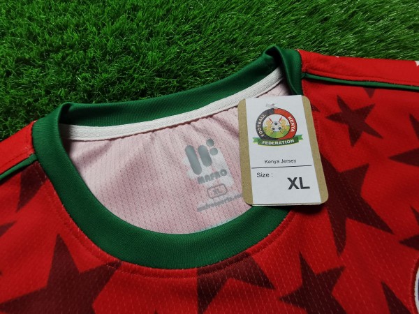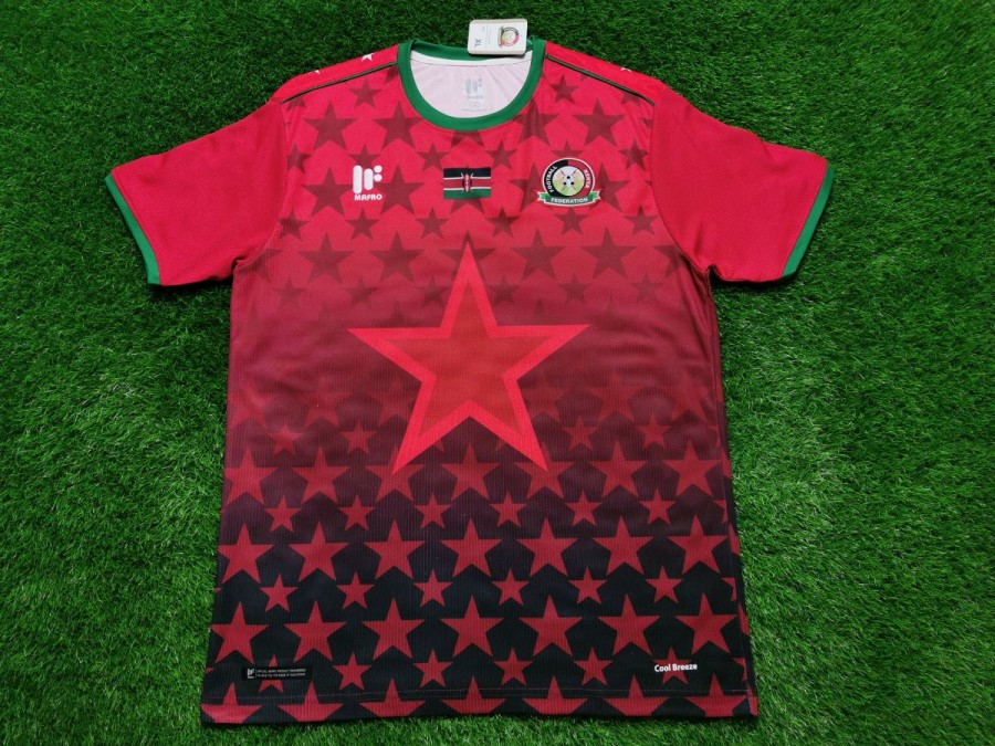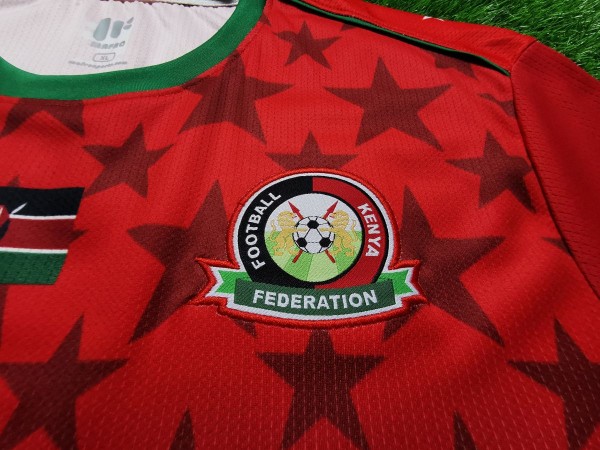 Nie sposób nie zauważyć ogromnej gwiazdy, która bije po oczach, gdy spojrzymy na tę koszulkę. Ponadto wokół niej umieszczono kolejne mniejsze podobne kształty. Nawet cała tylna część trykotu zawiera ten element. Inspiracją do stworzenia tego projektu był zapewne przydomek Kenii, czyli "Gwiazdy Harambee". Harambee z języka suahili oznacza projekt charytatywny, który zajmuje się rozwojem edukacji w Afryce. Możemy przypuszczać, że kraj ten uczestniczy w tym programie. Między logo producenta koszulki, a herbem reprezentacji znajduje się flaga państwa. Taki dodatkowy smaczek pokazuje przywiązanie do ojczyzny.