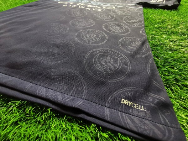 Szczególnie dobrze projekt prezentuje się gdy patrzy się na niego pod światło. Wówczas herby mienią się w promieniach. Zachowana została także spójność kolorystyczna. Nazwa klubu jest w typowym błękicie, natomiast cała reszta przybrała neutralną biel. W ciekawy sposób wykończone zostały także rękawy, które w wersjach meczowych miały cienką obwódkę mającą na celu uniemożliwienie ciągnięcia za rękaw.