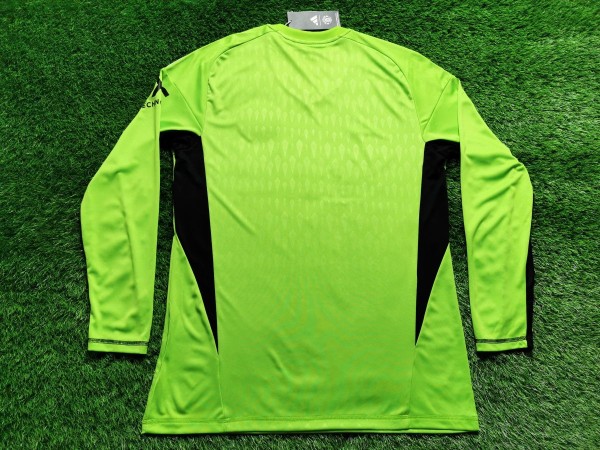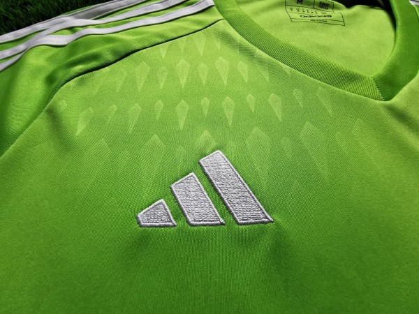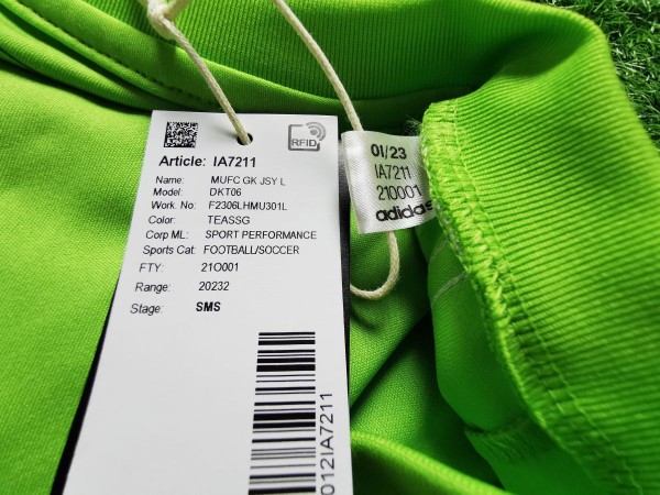 Interesująca sztuka. To model bramkarski z sezonu 2023/24, ale jest to prototyp. Mówi o tym dodatkowa karteczka przyczepiona przy metce w kołnierzu. Trykot pochodzi z etapu SMS, czyli przedsprzedażowego. Dzięki temu oddaje końcowy produkt swoimi właściwościami, ale oficjalnie nim nie jest.