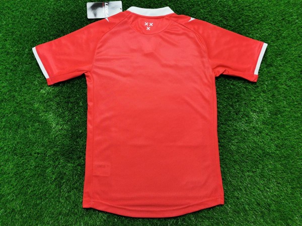 Bardzo ładny trykot holenderskiego zespołu, który jest dość rzadkim okazem, ponieważ nie jest wykonany w standardowych kolorach klubu - czarnym i żółtym. W alternatywnym trykocie zdecydowano się na czerwień i nietypowe wykonanie charakterystycznego pasa, który tutaj przyjmuje kolor biały. Nie jest jednak on ciągły, tak jakby zaznaczał coś charakterystycznego dla zespołu, ale wiedział, że tym czymś nie jest. Ten zabieg wyszedł bardzo fajnie :)