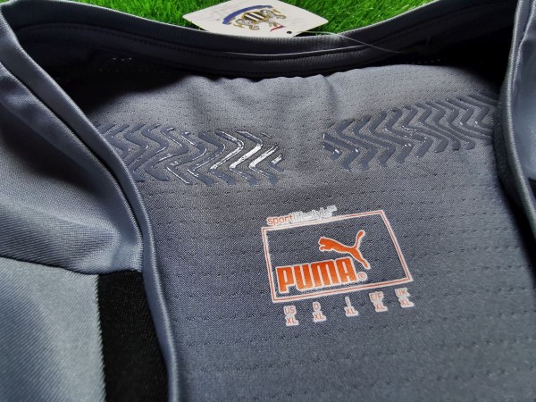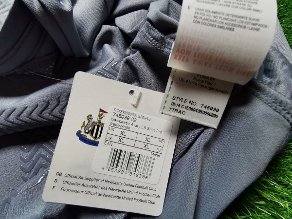 Śliczny model, który do rąk dostawali tylko piłkarze, gdyż to... niekomercyjna wersja meczowa wykonana w technologii ACTV. Nietypowy siwy kolor został ozdobiony drobnymi pionowymi paskami, które nie są zwykłymi liniami. To literki układające się w pełną nazwę klubu, czyli Newcastle United Football Club. Takie detale wznoszą trykoty na wyższy poziom, tym bardziej że ten egzemplarz jest zdobyty z niedostępnych dla przeciętnego mieszkańca globu miejsca. Jak na ACTV w tamtych latach przystało, trykot jest dość mały i osiada wewnętrzne pady, które miały za zadanie trzymać trykot w odpowiednim miejscu na ciele zawodnika podczas wysiłku.