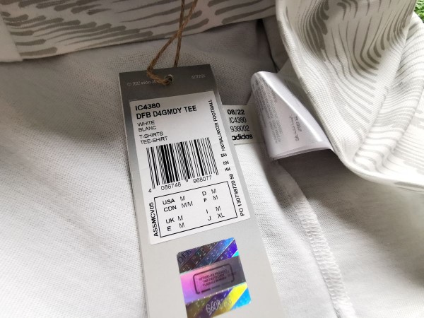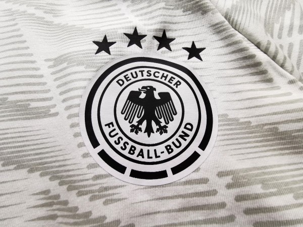 Bawełniany t-shirt reprezentacji Niemiec. Był używany przez kadrę jako koszulka, którą zawodnicy i sztab nosili w trakcie zgrupowań i wyjazdów na nich. Ten model pojechał także na Mistrzostwa Świata w 2022 roku w Katarze.