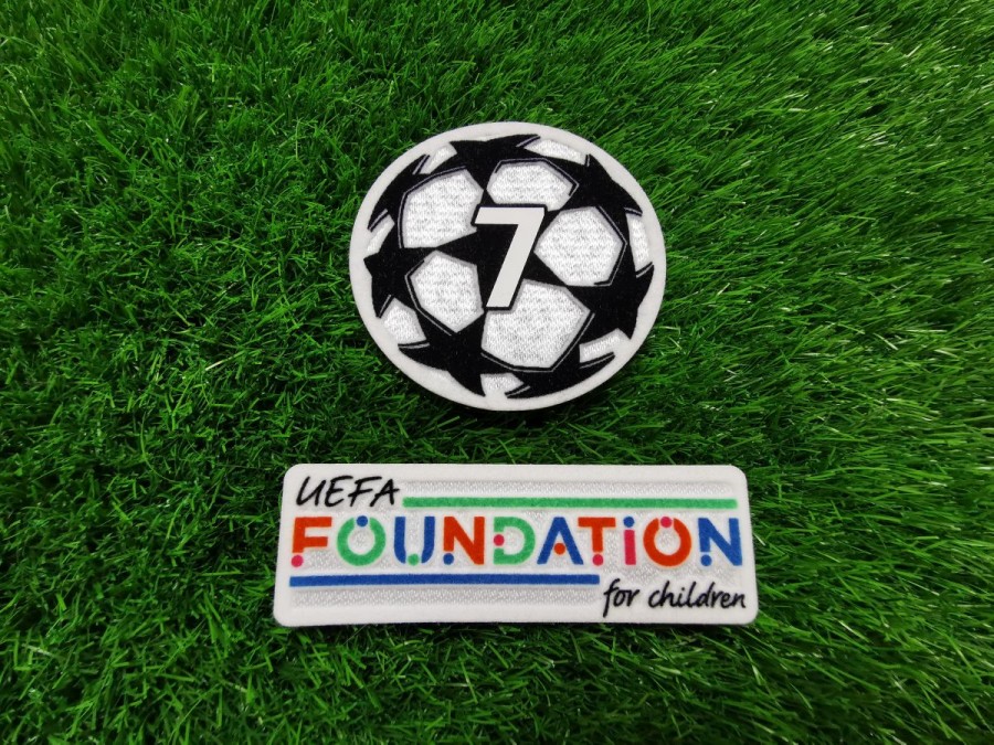 Patch Ligi Mistrzów oraz naszywka UEFA Foundation to zestaw używany na prawym rękawie w rozgrywkach od sezonu 2021/22 do dnia dzisiejszego. Są to oryginalne i oficjalne produkty, których producentem jest Sporting iD.
