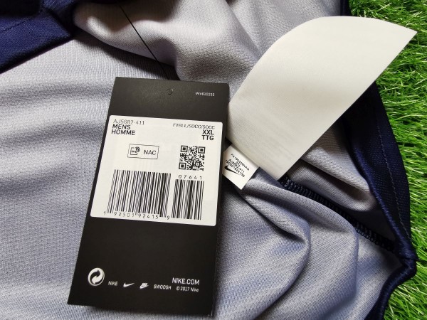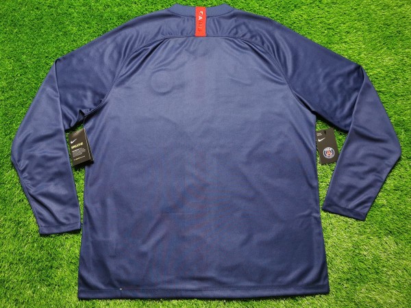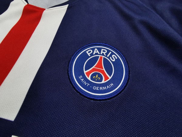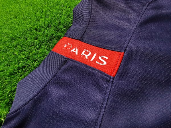 Połączenie granatu, bieli i czerwieni to klasyczny design dla domowych koszulek Paris Saint Germain. Producent wykorzystał te barwy układając je w taki sposób, aby odzwierciedlały flagę klubu. W tym przypadku mamy do czynienia z wersją z długim rękawem. Ciekawym dodatkiem jest czerwona szarfa umieszczona na tyle kołnierza i pojawiający się tak napis "Paris". Symbol ten może być fajnym akcentem dla kibiców jak i osób związanych z miastem, w którym założono PSG.