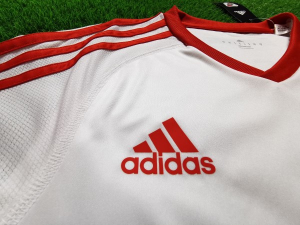 Gradientowy kolor czerwonej szarfy rozkochał w sobie fanów argentyńskiego River Plate. Ten rozpoznawalny element zyskał zupełnie nową odsłonę, dzięki czemu model na którym się pojawił stał się jednym z najładniejszych w tym okresie. W dodatku wyjątkowości nadały także trzy charakterystyczne paski Adidasa na ramionach. Zauważ, że nie kończą się one na barkach, lecz zostały zaprojektowane bez pozostawienia wolnej przestrzeni na przykładowo patch. Taki element w Europie pojawia się tylko na treningówkach, gdyż na modelach meczowych paski musiałyby zostać przerwane, aby stworzyć czyste pole. Takie są przepisy.