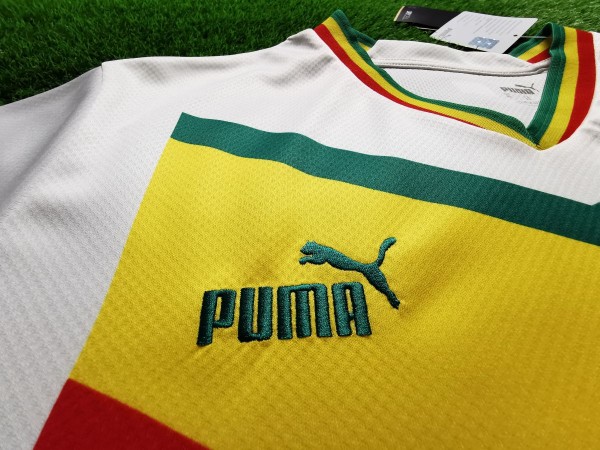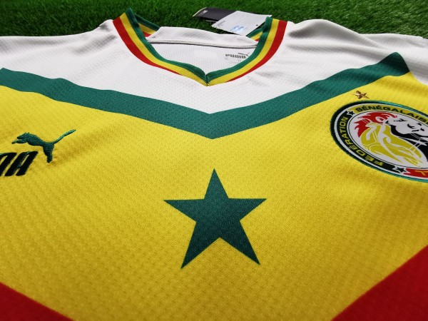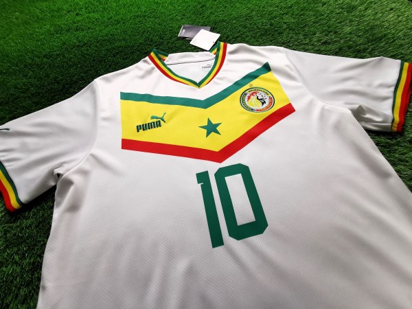 Ten domowy trykot został przygotowany na Mistrzostwa Świata w Katarze. Dwa zwycięstwa, z Katarem oraz Ekwadorem, dały awans z grupy, więc turniej należy zaliczyć do udanych. W 2023 roku odbył się CHAN, czyli Mistrzostwa Narodów Afryki. To turniej w którym reprezentacji mogą składać się wyłącznie z zawodników grających w krajowych ligach. Senegalczycy wygrali ten turniej pokonując w finale 5:4 w rzutach karnych gospodarza, Algierię.