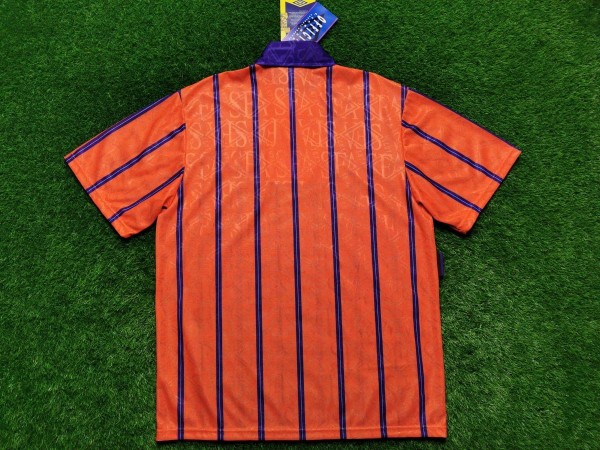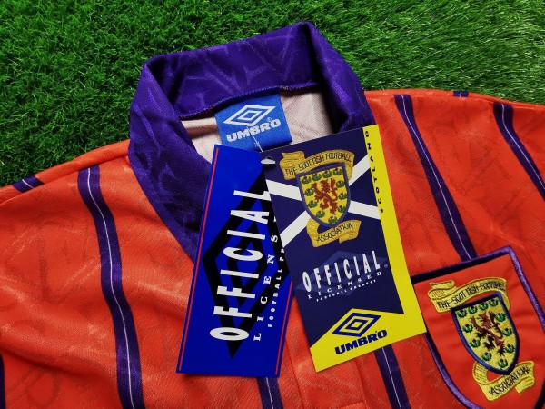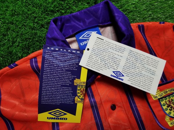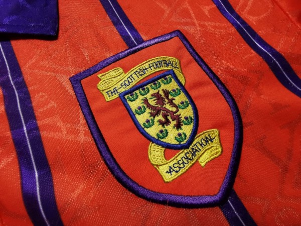 Bardzo rzadki model koszulki reprezentacji Szkocji! Wiele stron opisuje ten model jako 1993-95, jednak tak naprawdę koszulka była użytkowana nieco krócej. Pierwszy mecz rozegrano w niej 24 marca 1994 roku. Mimo iż Szkocja grała u siebie, zaprezentowała właśnie ten nowy model wyjazdówek. Było to spotkanie towarzyskie przeciwko reprezentacji Niemiec. Później już zbyt często jej nie oglądano, gdyż... użyto jej jeszcze w dwóch meczach wyjazdowych - przeciwko Estonii i Włochom.