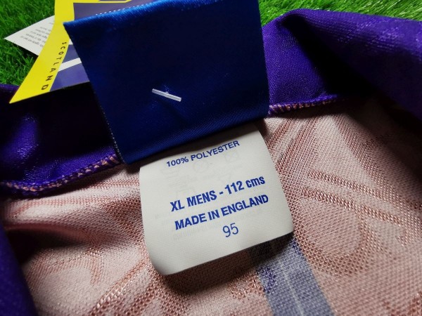 Trykot oddaje swoją cały klimat lat 90-tych. Jest przepiękna, a mieniące się w niej światło odkrywa jej tajemnice. Cała jest pokryta diamentami Umbro, napisem SFA (Scotland Football Association) oraz rokiem założenie federacji - 1873. Postaraliśmy się jej wszystkie zalety wyeksponować na zdjęciach, robiąc je z wielu kątów, tak aby pozwolić zobaczyć niemalże każdy detal :)