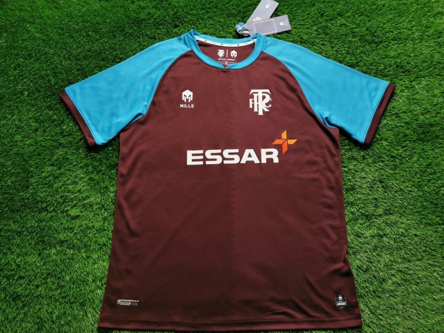 Trykot ma ciekawą budowę. Składa się z dwóch odcieni, które dzielą projekt na dwie części. Jednak na tym się nie kończy, bowiem można na nim znaleźć drobne kropki, które urozmaicają odbiór wizualny. Tranmere ma także ciekawą tradycję, że na wyjazdowych strojach używają innego herbu niż w domówkach. Piękne klasyczne połączenie liter TRFC jest kolejną rzadkością, która wiąże się z tą koszulką.