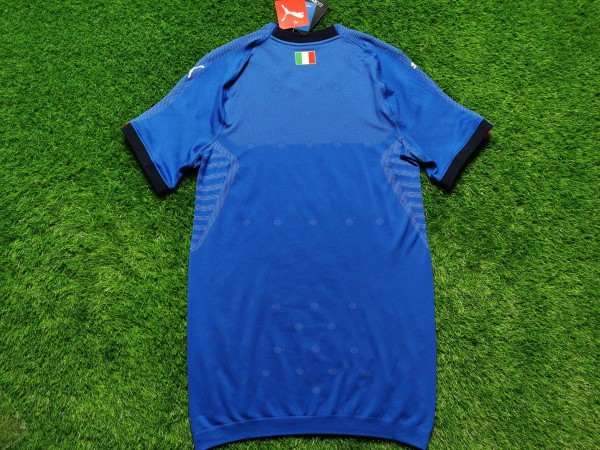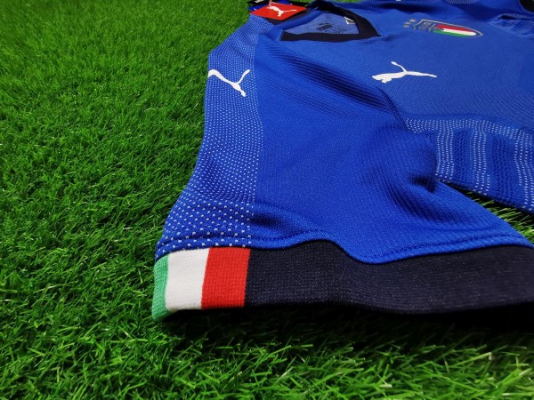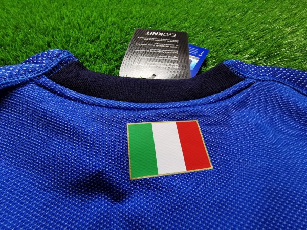 Koszulka reprezentacji Włoch to niekomercyjna wersja meczowa wyprodukowana w technologii Evoknit. Mimo, że z pozoru wydaje się być nudnym, niebieskim, niczym wyróżniającym się trykotem, to zachwyca jakością i wykonaniem. Po bliższym przyjrzeniu się zauważymy na korpusie, rękawach i pachach wzór, który został zaprojektowany w taki sposób, aby zapewnić maksymalny komfort profesjonalnym piłkarzom w trakcie meczów. Ciekawym dodatkiem jest umieszczenie flagi Włoch na niebieskiej taśmie kończącej rękawy oraz na tylnej części kołnierza.